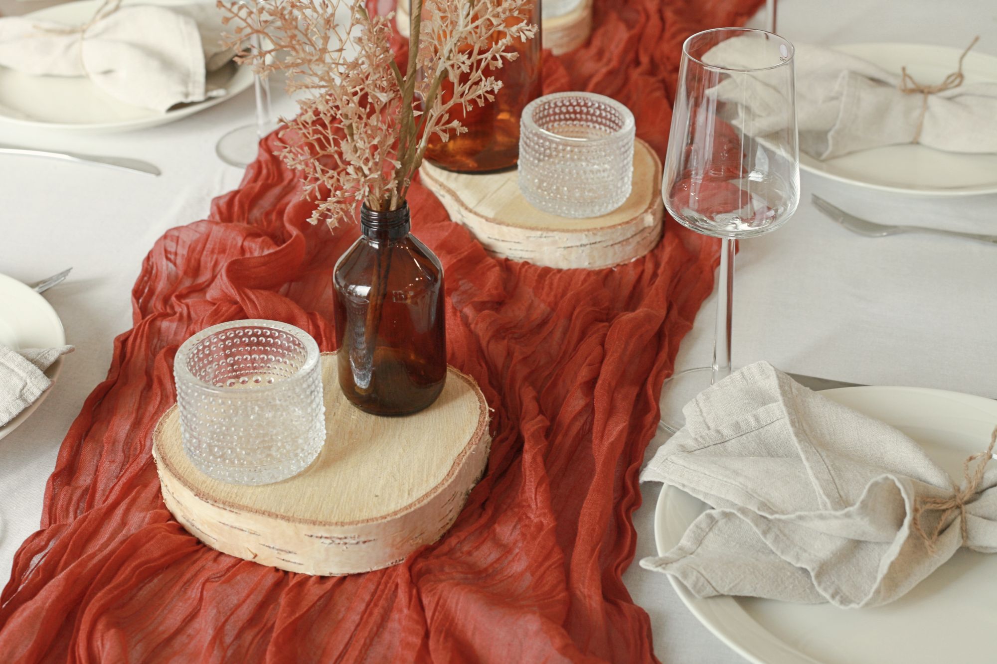 Puukiekoilla lisäät juhlatilaan rustiikkista ja luonnonläheistä tunnelmaa. Ne sopivat maljakoiden, karahvien ja kynttilänjalkojen alle.